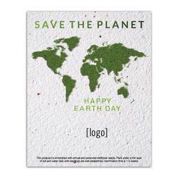 This panel card delivers more than just your custom-printed message – when planted, it grows into a garden of wildflowers! Your full-color, custom message is printed directly on Premium seed paper with Earth-friendly inks that wont damage the seeds.Our seed paper is made by hand from 100%-recycled material and embedded with a hardy mixture of wildflower seeds. Just plant the entire postcard, water, and enjoy your wildflowers! Choose from our pre-designed Earth Day artwork. Choose a letter after the -EDEW- to reference the design you love. Send us your camera-ready logo and well do the rest. Or fully customize the item for no additional charge.